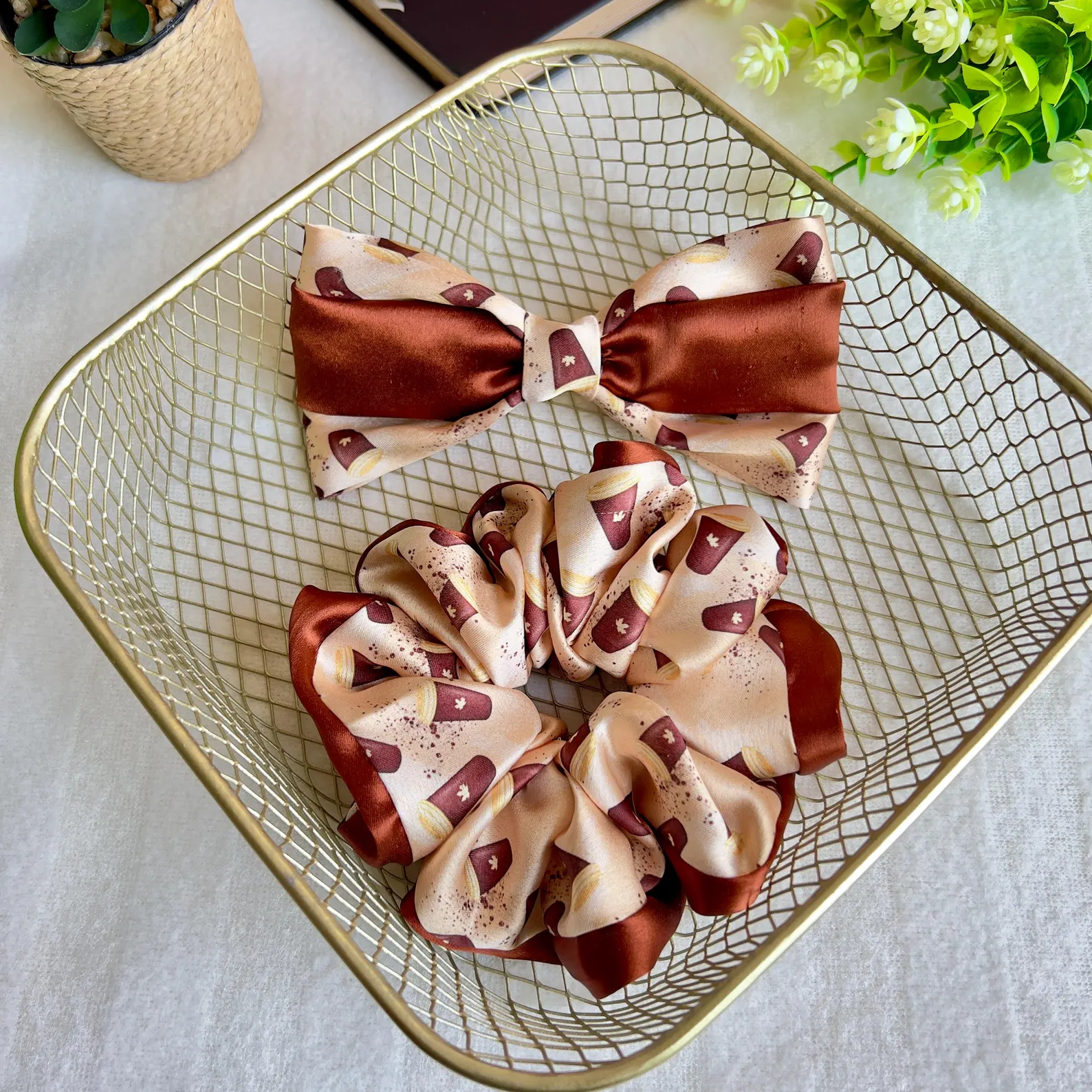 Be the first to review “Coffee Caramel Combo | Scrunchie and Bow”