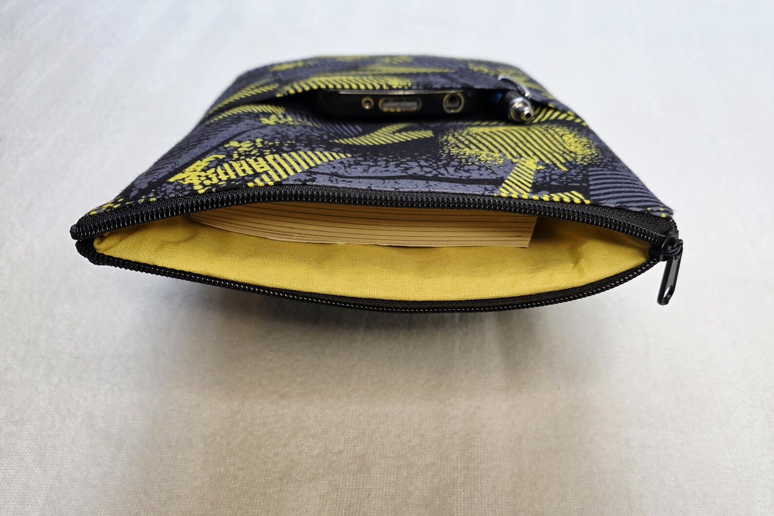 The smooth zippered closure keeps your book secure, while the handy outside slip pocket is perfect for storing a phone, pen, bookmark, glasses, or small essentials.