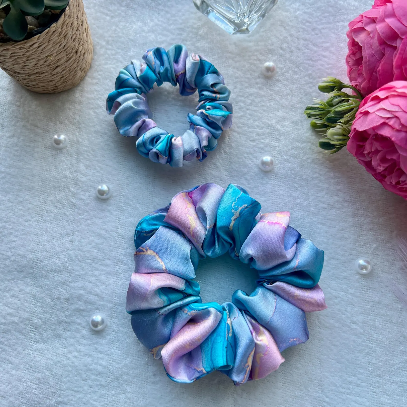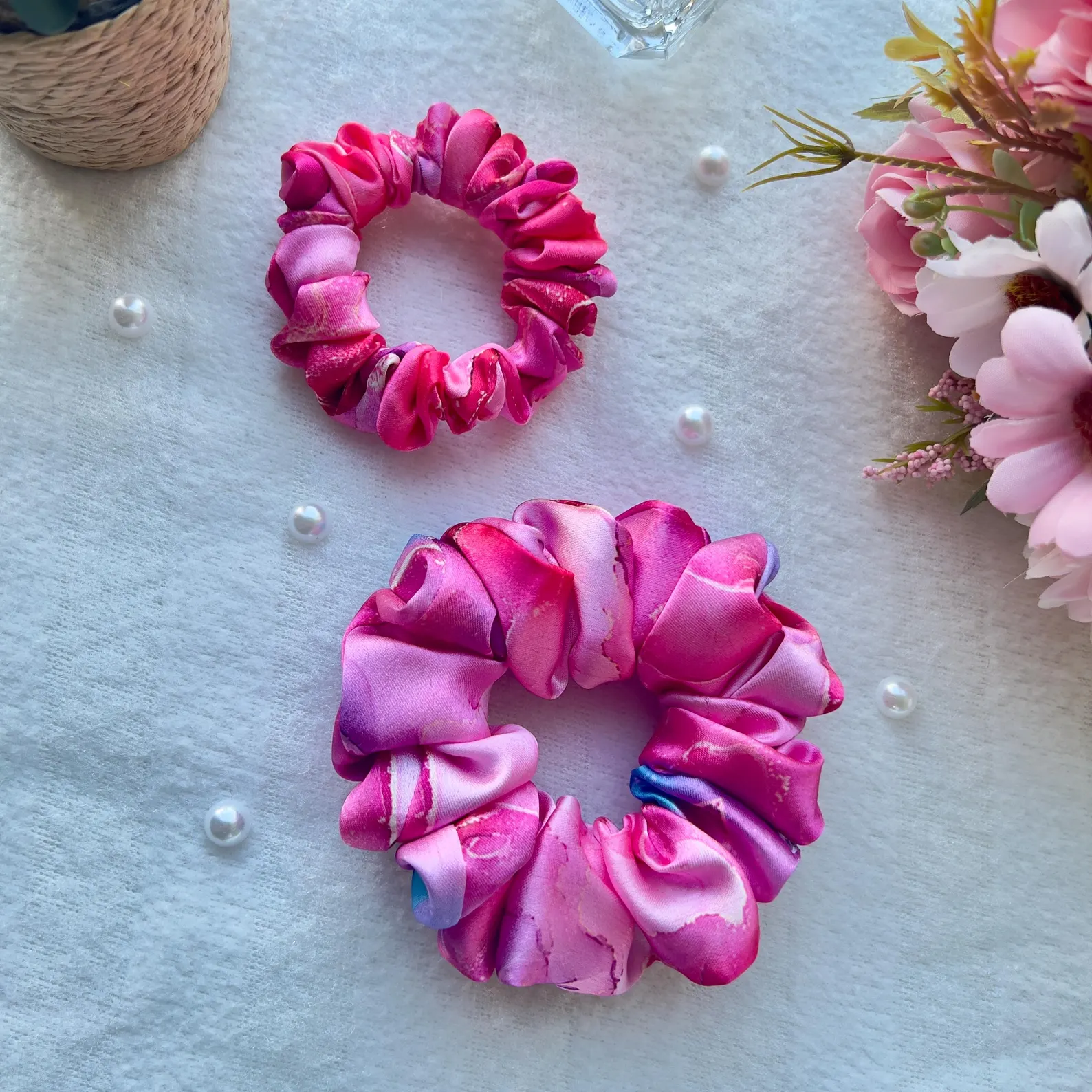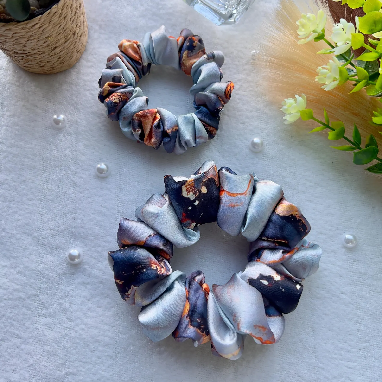 Luxury Satin Marble Scrunchie: Handmade Hair Accessory