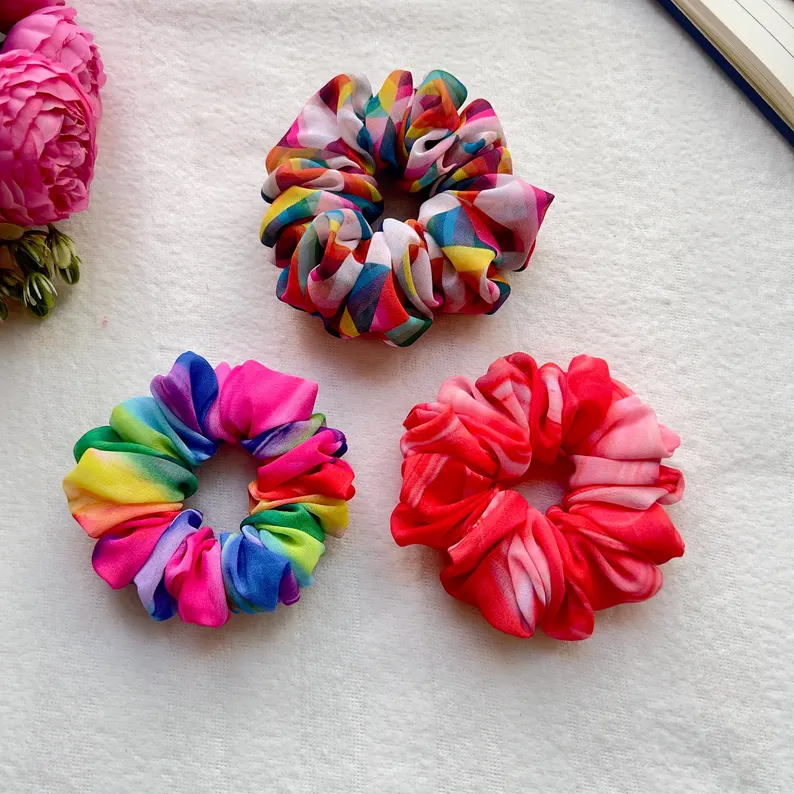 Vibrant Georgette Scrunchie: Colorful Hair Accessory